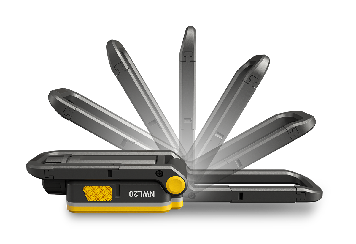 Der Fuß der NWL20 ist 180 ° verstellbar, magnetsich und als Karabiner ausgeführt. Es ergeben sich somit zahlreiche Möglichkeiten zur Befestigung der Lampe.