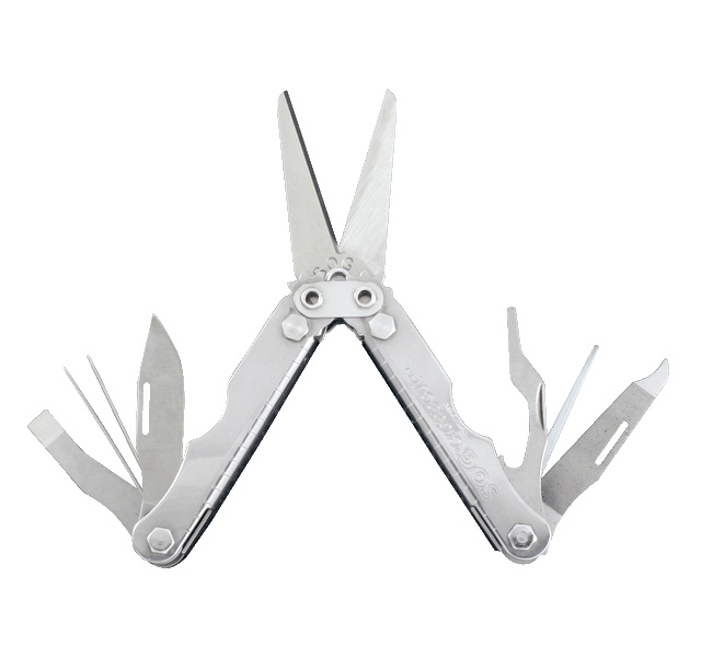 CROSSCUT ist ein Präzisionsinstrument. Auch hier verwendet SOG das innovative, kräftesparende COMPOUND LEVERAGE System. COMPOUND LEVERAGE verleiht dem CROSSCUT die Schneidkraft, die man normalerweise nur von größeren Werkzeugen erwartet. Länge - geschlossen 6,4 cm Länge - geöffnet 10,2 cm Gewicht 48 g Zangenkopf Schere Stahlsorte rostfreier Stahl Ausführung poliert Gürteletui Vinyl Ausstattung · federgelagerte Schere · Taschenmesserklinge · schmaler Schraubendreher · mittlerer Schraubendreher · Pinzette · Nagelfeile mit -reiniger · Flaschenöffner · Zahnstocher · Lineal · Anhängering · Compound Leverage | CC50 Artikelnr.: 13010050 poliert | 29,41 € | |