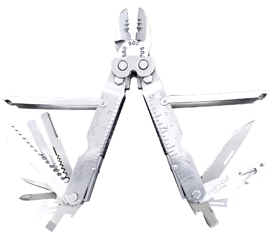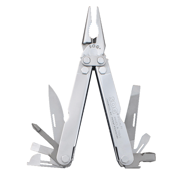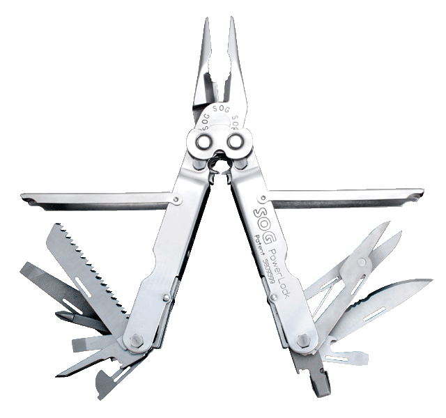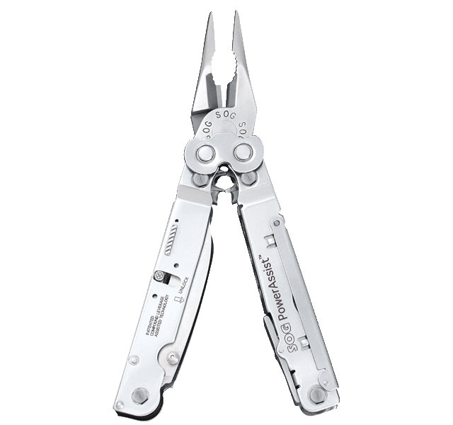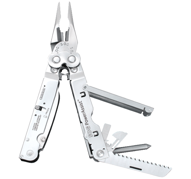 S67 Artikelnr.: 13060067 poliert B67 Artikelnr.: 13061067 brüniert Das neue POWER ASSIST - eine Klasse für sich. Es ist das erste Multi-Tool mit zwei über SOG Assisted Technology unterstützte Klingen. Das Öffnen der Klinge geschieht naheztu automatisch. Im geschlossenen Zustand sind die Klingen über die zum Patent angemeldeten Seitenarretierung. Über die 'flip open' Funktion läßt sich die Zange mit nur einer Hand öffnen. Auch während der härtesten Beanspruchung, das Tool liegt sicher und komfortabel in der Hand. Geöffnet haben Sie Zugriff auf fünf weitere, arretierbare Komponenten, ausgestattet mit dem neuen Piano-Lock.