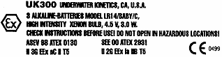 Technische Daten: Farbe: gelb Verpackung: auf Blister, mit Batterien Wasserdicht bis m: 10 Ex-Schutz Zone 1: ATEX 3806 II 2G Ex ib IIB T5 Ex-Schutz Zone 2: ATEX 3807 II 3G EEx nA II T5 Alkaline-Batterien: 3 x C Leistung (Watt): 3,1 Leuchtstärke (Lumen): 53 Brenndauer (h): 4-5 Abmessung (mm): 218 x 50 x 40 Gewicht (g): 375 | UK 300 A must for firefighters, search & rescue professionals and safety personnel. UL, FM, CSA rated Class I Div 2; CENELEC Eex (ATEX) for use in hazardous locations.