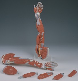Bei diesem neuen Modell in natürlicher Größe sind folgende Muskeln abnehmbar: • M. deltoideus • M. biceps brachii • M. triceps brachii • M. palmaris longus mit M. flexor carpi radialis • M. brachioradialis mit M. extensor carpi radialis Lieferung auf Sockel Art.Nr. M 11