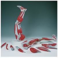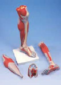 Das Modell zeigt die oberflächlichen und tiefer liegenden Muskeln des linken Beins mit Fuß, von denen Sie acht abnehmen und detailliert studieren können. Muskeln, Sehnen, Gefäße, Nerven und Knochenpartien sind akkurat dargestellt und nummeriert. Auf abnehmbarem Sockel. Größe: 77x26x26cm, Gewicht: 3kg Art.Nr. M 20 420,00