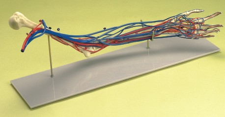 | Armskelett mit Gefäßen Naturabguß eines menschlichen Armes mit Darstellung der Blutgefäße. Gezeigt sind die Ateria brachialis, radialis und ulnaris mit zugehörigen Venen und Wurzelaterien. Das koplette Kreislaufsystem der Hand ist dorsal und palmar dargestellt. Es wurde Wert auf das richtige Größenerhältniss zwischen den einzelnen Gefäßen gelegt um das Studium des Gefäßsystems des Arms zu erleichtern. Auf Stativ. 66x18x28cm | | 6080 403,36 € | |