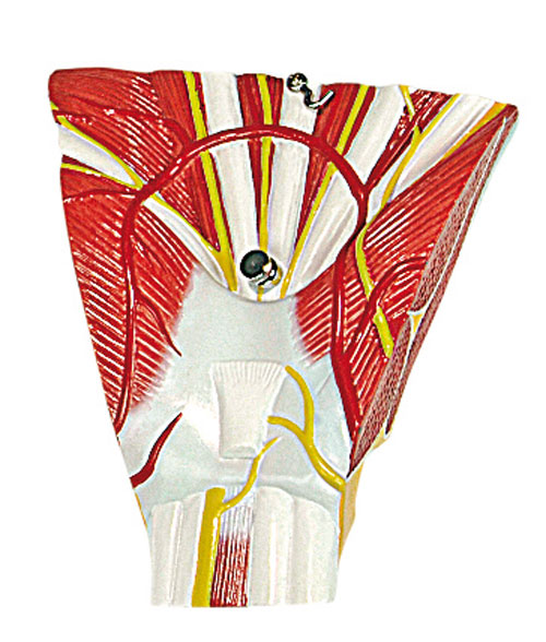 | Muskelarm, 3/4 natürliche Größe, 6 Teile Das Modell zeigt die oberflächlichen und tiefer liegenden Muskeln des linken Armes mit Schulter, von denen Sie 5 abnehmen und detailliert studieren können. Muskeln, Sehnen, Gefäße, Nerven und Knochenpartien sind akkurat dargestellt und numeriert. Auf abnehmbarem Sockel. Größe: 60x18x18cm |