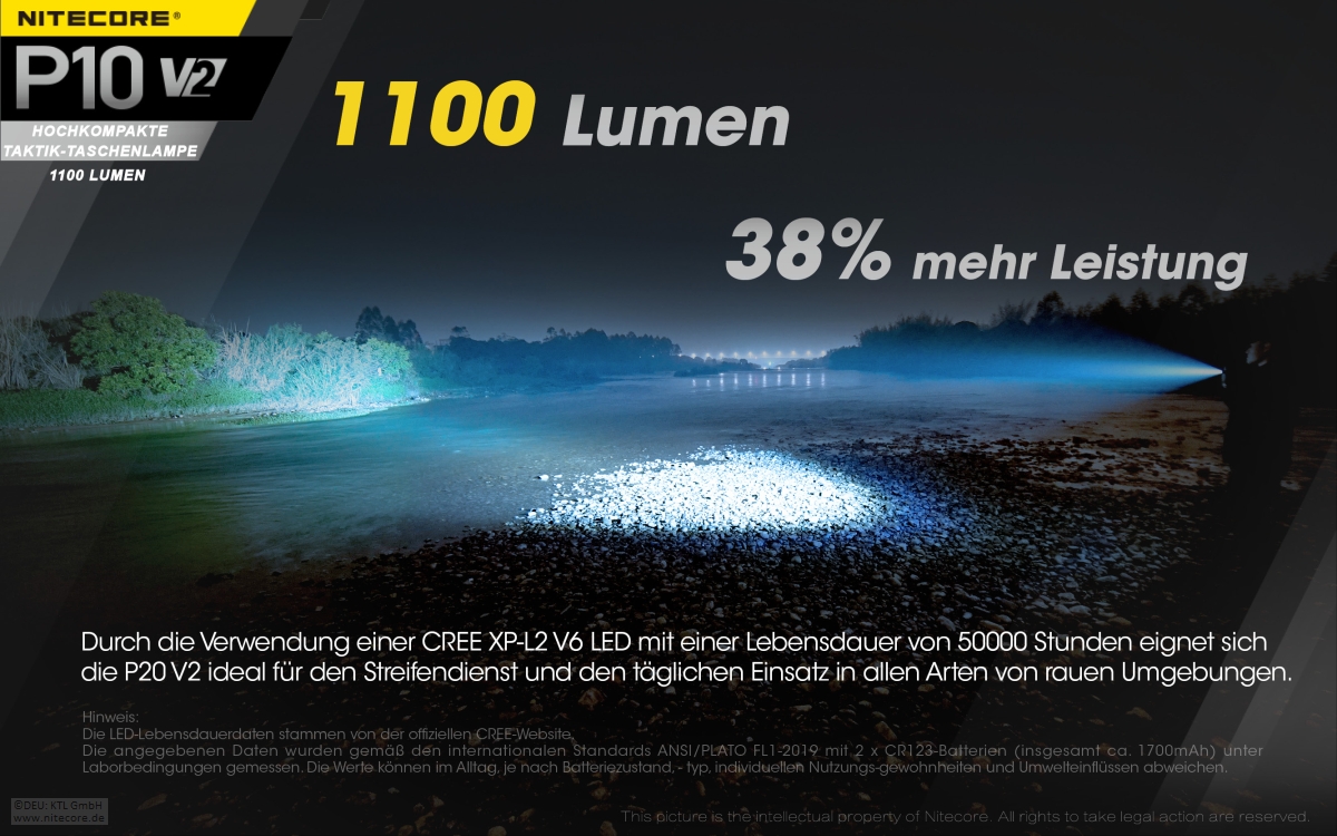 Details NITECORE P10 V2 - max. 1100 Lumen