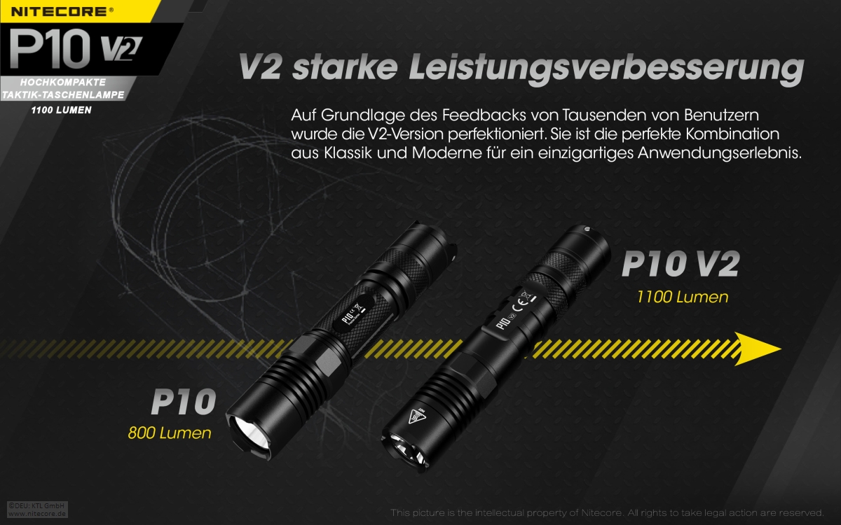 Details NITECORE P10 V2 - max. 1100 Lumen