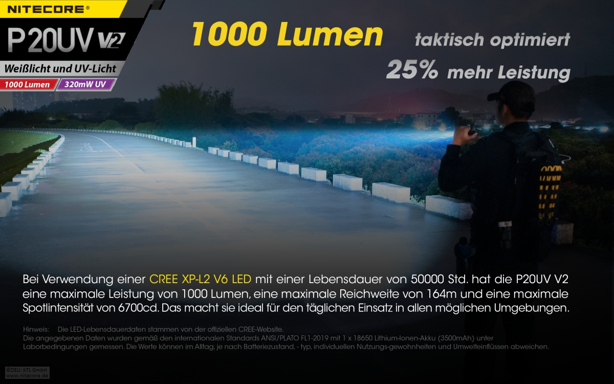 Details NITECORE P20 UV V2 - max. 1000 Lumen