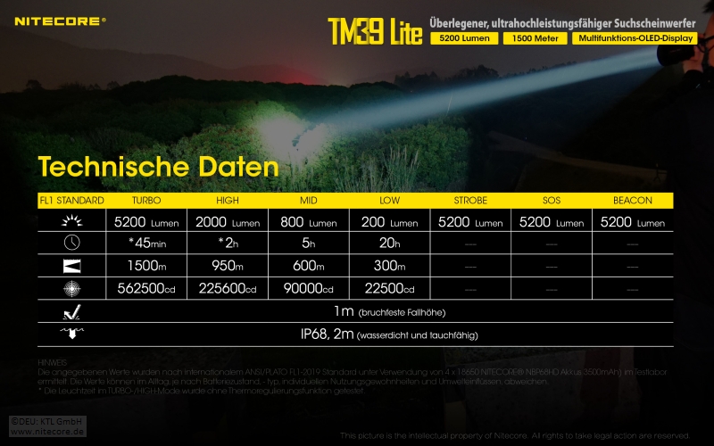 Produkteigenschaften "Nitecore TM39 - 5200 Lumen"