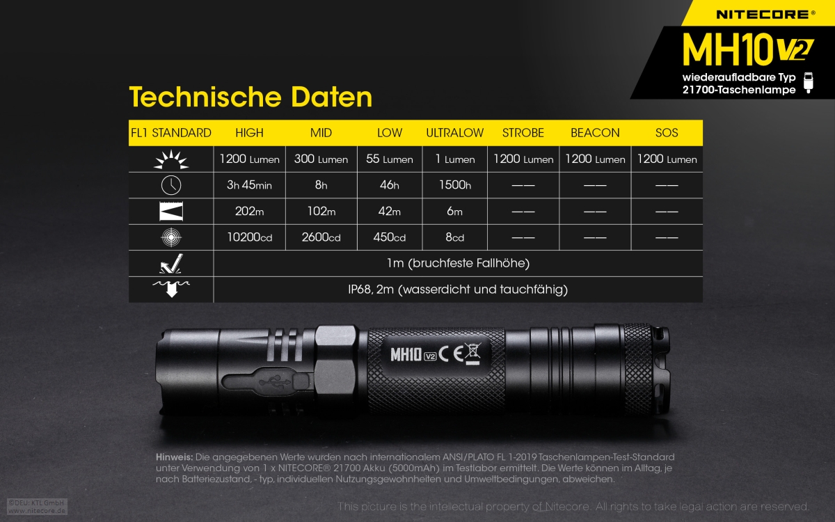 Details NITECORE MH10 V2 - max. 1200 Lumen