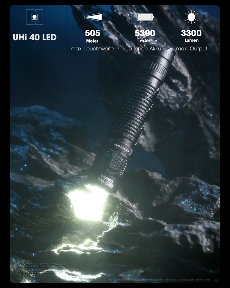 Die Nitecore MH12 Pro ist die erste LED-Taschenlampe mit einer NiteLab UHi-LED. Die UHi-LED ist eine Eigenentwicklung des Herstllers NiteLap der, wie auch Nitecore, zur Sysmax-Gruppe gehört.