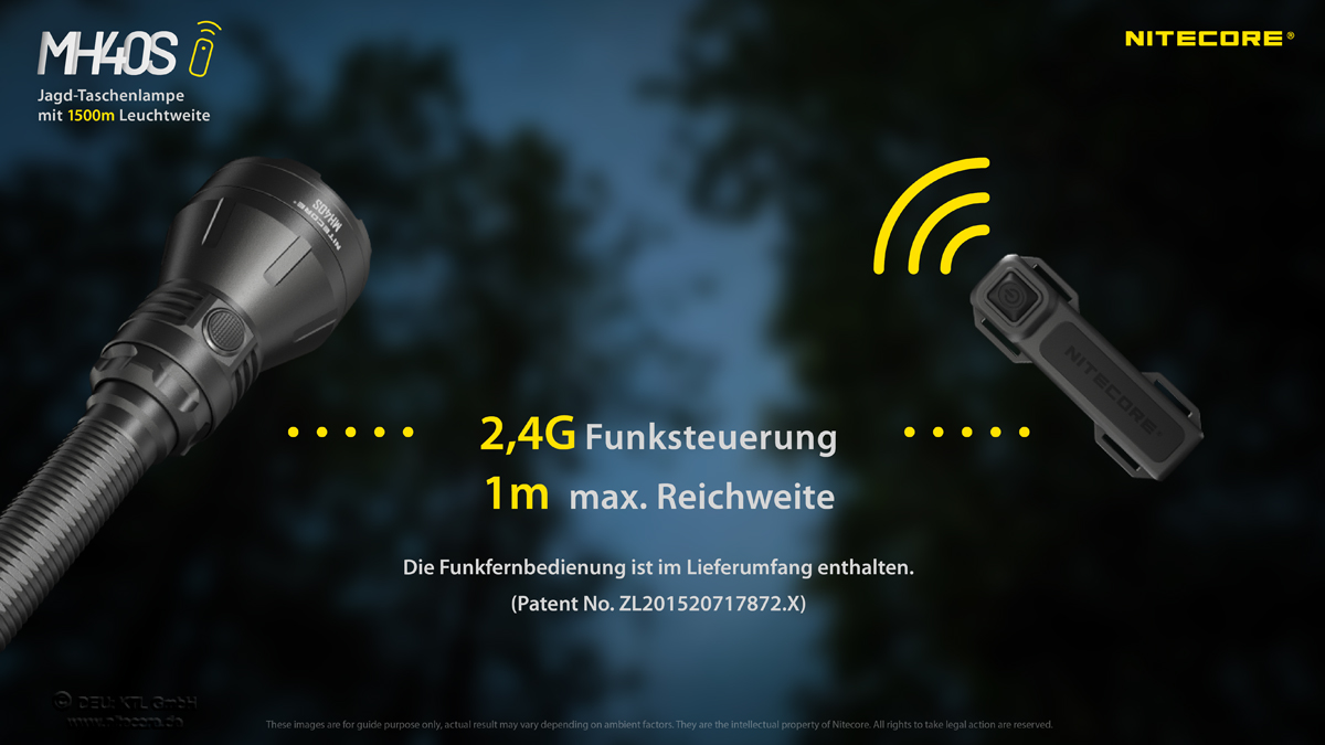 Ein weiteres und besonderes Feature der Nitecore MH40S ist der kabellose Fernschalter welcher zum Lieferumfang gehört. Über diesen Fernschalter lassen sich alle Funktionen der Lampe bedienen. Der Fernschalter wird über eine Knopfzelle (CR1632) mit Strom versorgt.