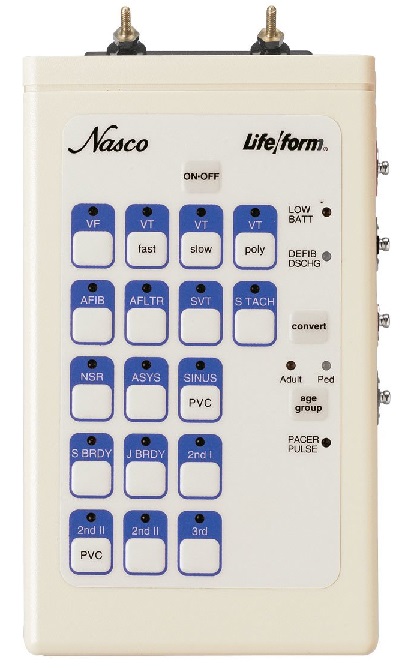 17 Erwachsenen-/Kinderrhythmen: -Kammerflimmern, - Kammertachykardie (schnell), - Kammertachykardie (langsam) - Kammertachykardie (polymorph) - Vorhofflimmern. - Vorhofflattern. - Supraventrikuläre Tachykardie - Sinustachykardie, - Sinusrhythmus mit VES - Asystolie, - Normaler Sinusrhythmus - Sinusbradykardie - Junktionale Bradykardie