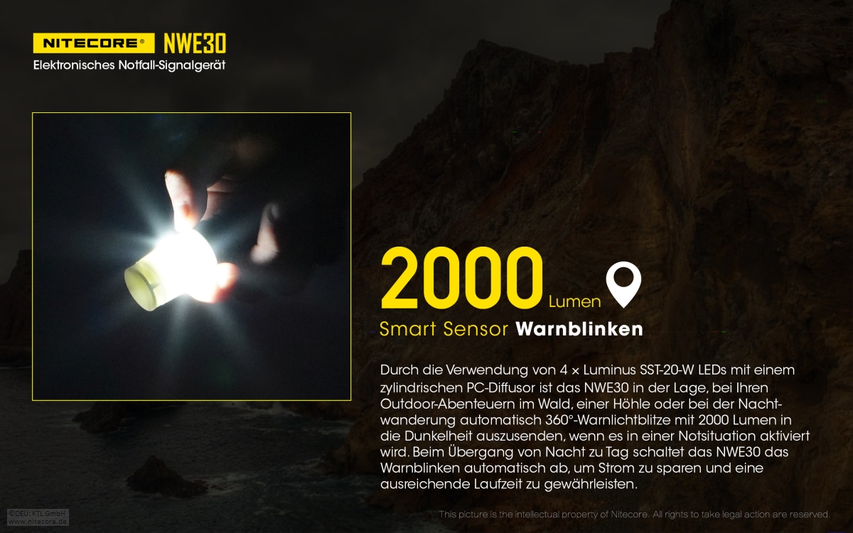 Das Nitecore NWE30 ist ein elektronisches Notsignalgerät. Es kombiniert eine akkustisches und optisches Notsignal.