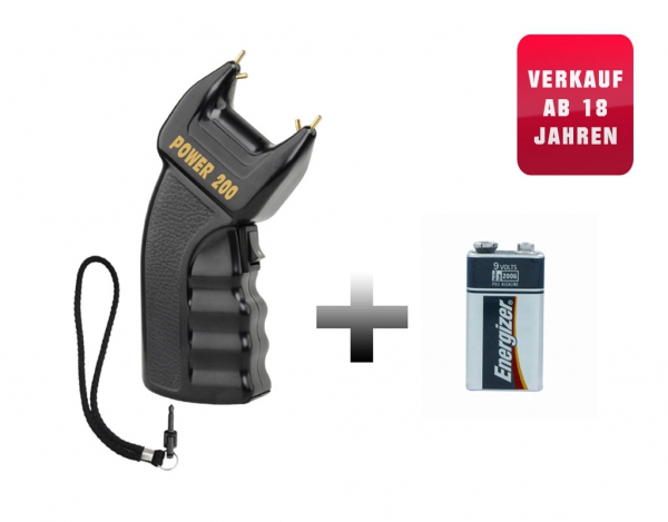 1) Zusätzliche hochwertige Batterien Der Power 200 wird inkl. einer hochwertigen 9 V Block Energizer Alkali Batterie geliefert. Wir empfehlen diesen Elektroschocker ausschließlich mit Energizer Alkali Batterien zu verwenden um eine einwandfreie Funktion und maximale Leistung zu gewährleisten.