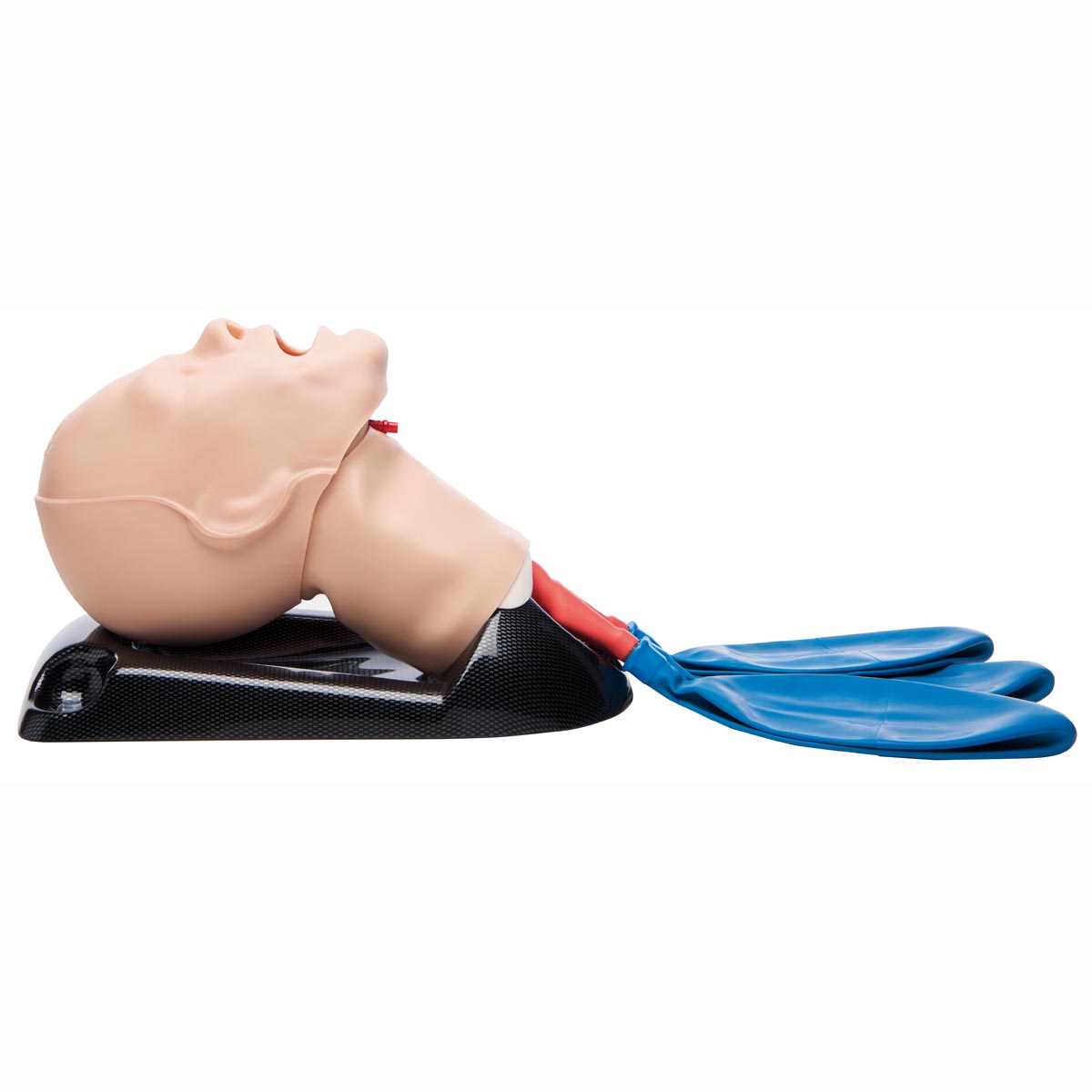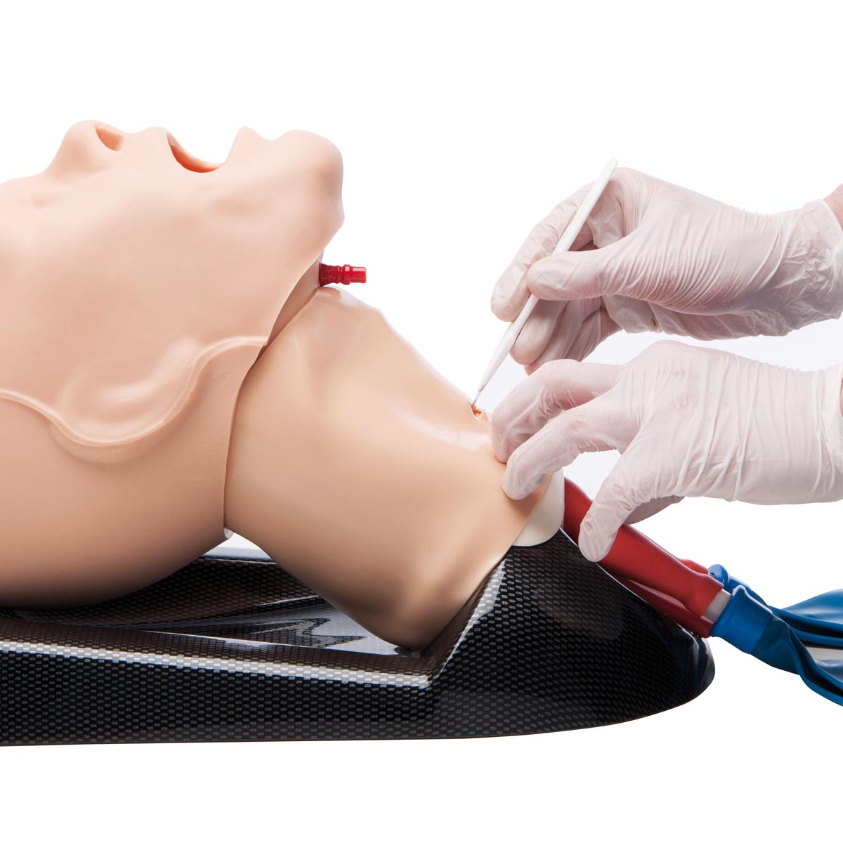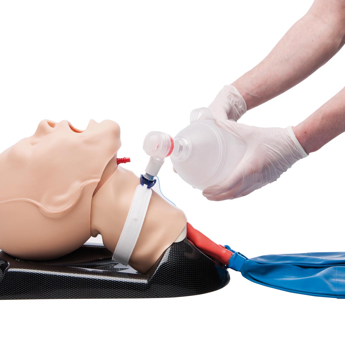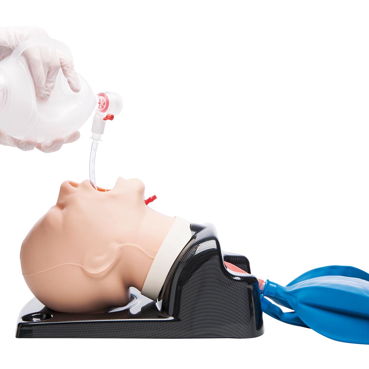 Das Erlernen sowohl der oralen als auch der nasalen Trachealintubation • Das Erlernen der Handhabung supraglottischer Beatmungshilfen (z. B. über Larynxmaske,Speiseröhrenschlauch) Die Festellung der Atemgeräusche links und rechts mit einem Stethoskop Das Feststellen der Beatmung einer einzelnen Lunge Das Festellen einer versehentlichen Speiseröhrenintubation Die Verwendung des Laryngoskops und das Üben des Offenhaltens der Atemwege annähernd wie bei einem lebenden Körper Nackenbeugung und Kopfstreckung Beweglichkeit des Unterkiefers nach vorn
