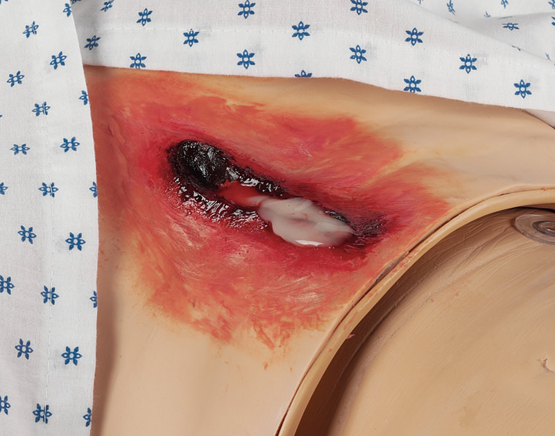 Applikationen von Wunden, Blasen, Abschürfungen, blauen Flecken und vielem mehr bieten visuelle Unterstützung. Die Moulagen gestalten die Übungssituationen so realistisch, dass sich die Lernenden vollständig in die vorgestellten Szenarien hinein denken und sich darin engagieren. Ihnen wird klar gemacht, dass der Patient oder der Patientensimulator angemessen gepflegt werden muss.
