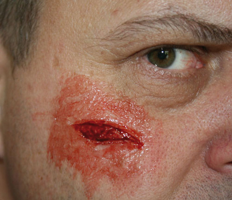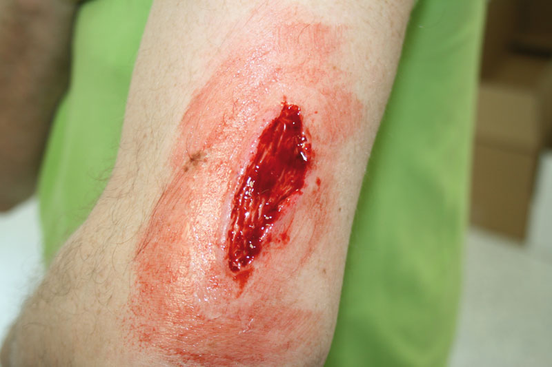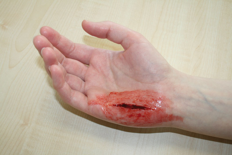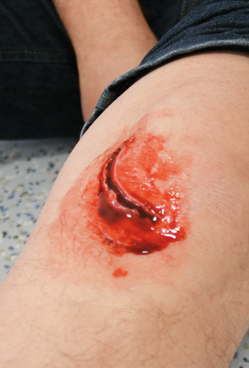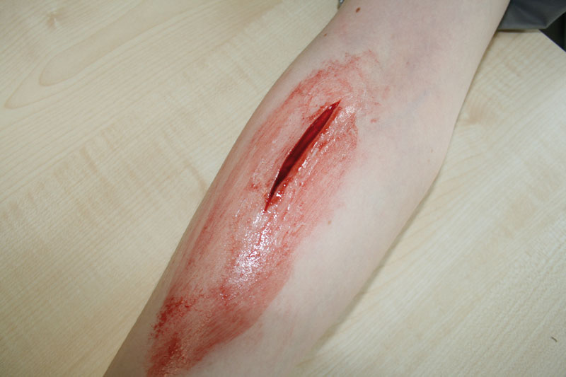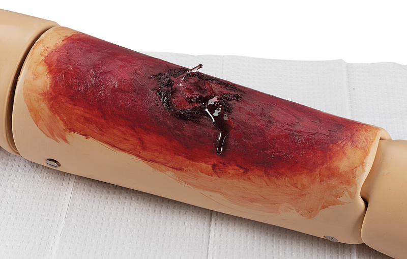 Wunden zum Aufkleben Augapfel Vorstehende Fremdkörper Austretende Eingeweide Große Schnittwunde 5 cm Mittelgroße Schnittwunde 3 cm Kleine Schnittwunde 1 cm Komplizierter Schienbeinbruch Komplizierter Oberarmbruch Komplizierter Oberschenkelbruch Kleine Sepsiswunde Große Sepsiswunde Abriss 3 cm x 5 cm Großer Abriss 8 cm x 5 cm Gequetschter Fuß Verbrennung 2. Grades Verbrennungen 1., 2. und 3. Grades Kleine Fleischwunde Große Fraktur Kieferwund Kleine Fraktur Stichwunde Blutende Wunden zum Anlegen - mit Blutbeutel und Pumpen (7) Pfählungsverletzung am Unterschenkel Gebrochenes Schlüsselbein Schnittwunde auf Unterarm Eintritt eines Projektils Liner: schwarz, weiß, braun, rot, fleischfarben, blau, gelb Simulationswachs Plastilin: dunkel, weiß Methylcellulose Blutpulver Geronnenes Blut