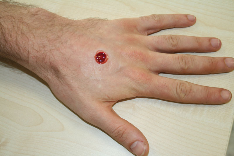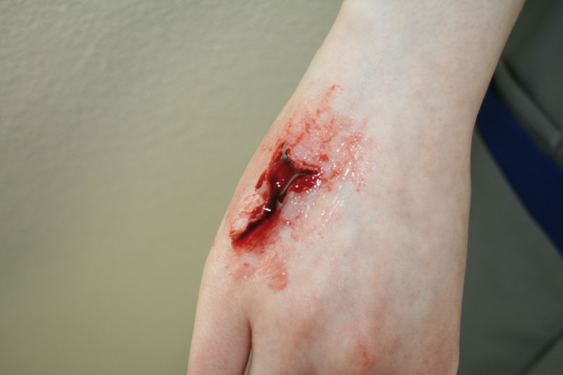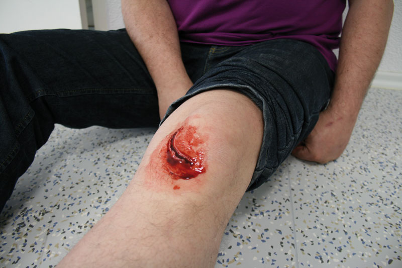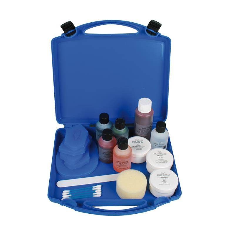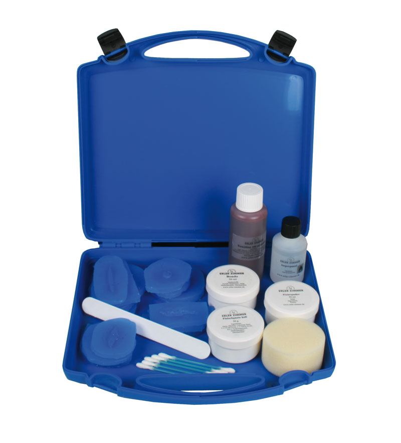 EZ Wounds – Wundensimulation für Simulationspatienten Mit diesem Wundensimulationsset gestalten Sie in wenigen Minuten ohne Schminkkenntnisse genau die Wunden,  die Ihre Simulationspatienten benötigen. Mit einer kurzen Anwendungseinweisung können die Darsteller die Wunden selbst anbringen, bzw. sich gegenseitig schminken, ohne dass die Tutoren wertvolle Zeit für das Schminken aufwenden müssen. Die im Set enthaltenen Formen können beliebig oft mit der Wundsimulationspaste gefüllt werden. Die gefüllten Formen werden nach trocknen der Paste einfach auf die gewünschte Position aufgedrückt, die Wunden haften selbstständig und ohne Klebstoff auf der Haut oder auf Übungspuppen. Einfach das mitgelieferte Blut auf die aufgeklebte Wunde auftragen und die Wunde ist fertig. Wer es noch realistischer wünscht, kann durch das Aufbringen von Fleischpaste in die Wunde einen noch echteren Effekt erzielen. Aufgeklebte Wunden können mehrfach versorgt werden, einfach den Verband abnehmen, kurz abwaschen und neues Blut aufbringen. Nach Ende der Ausbildung kann die Wunde problemlos wieder abgelöst und entsorgt werden. Eine Reinigung oder Pflege ist nicht nötig. Verbrauchsmaterial wie Wundsimulationspaste, Fixierpulver, Fleischpaste und Blut sind separat erhältlich.