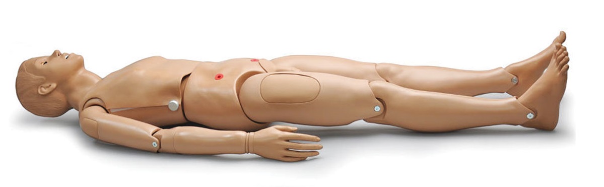 Ganzkörperpuppe (Erwachsener) mit beweglichen Gelenken sowie weichen Fingern und Zehen zum Üben wichtiger Basismaßnahmen der Krankenpflege, wie z.B.: Haarpflege und Narbenabdeckung Baden und Verband anlegen Mund- und Zahnprothesenpflege (beweglicher Kiefer mit herausnehmbaren Zahnprothesen) Augenspülungen I.m.-Injektion (Arm und Gesäß) Kolostomie-, Ileostomie- und suprapubische Stomaversorgung Nasen-/Magen-Spülungen und Sondenernährung Katheterisierung (männlich und weiblich) Einlaufverabreichung Vaginalspülungen und Abstriche