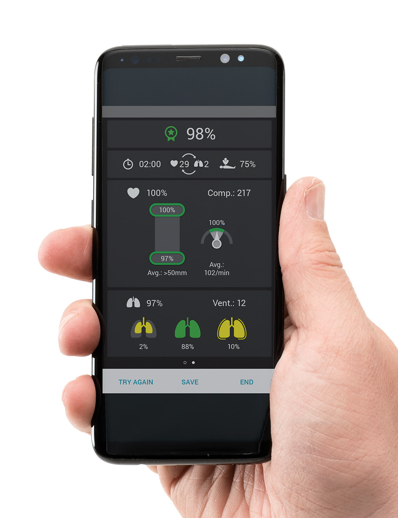 überwacht und protokolliert die Häufigkeit und Tiefe der Herzkompression und Beatmung der Atemwege